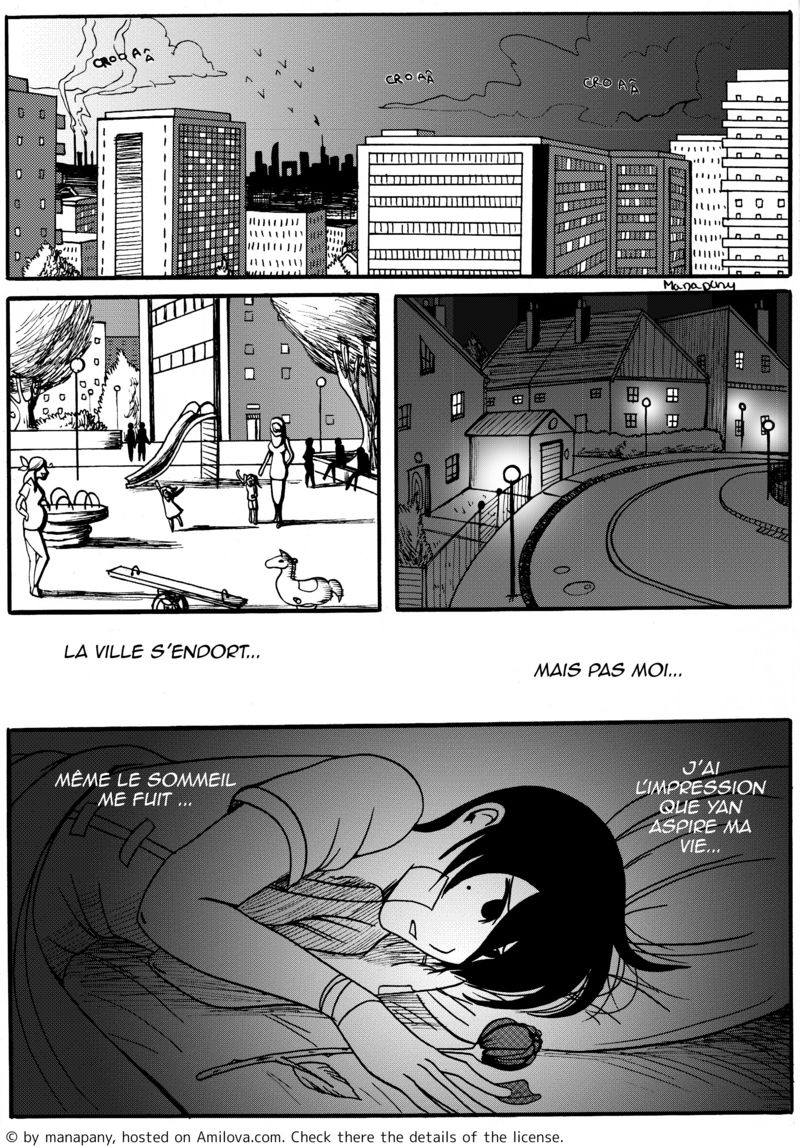 manapany 09/21/2014 00:13:30j'adore ça phrase " même le sommeil me fuit... J'ai l'impression que yan aspire ma vie..."