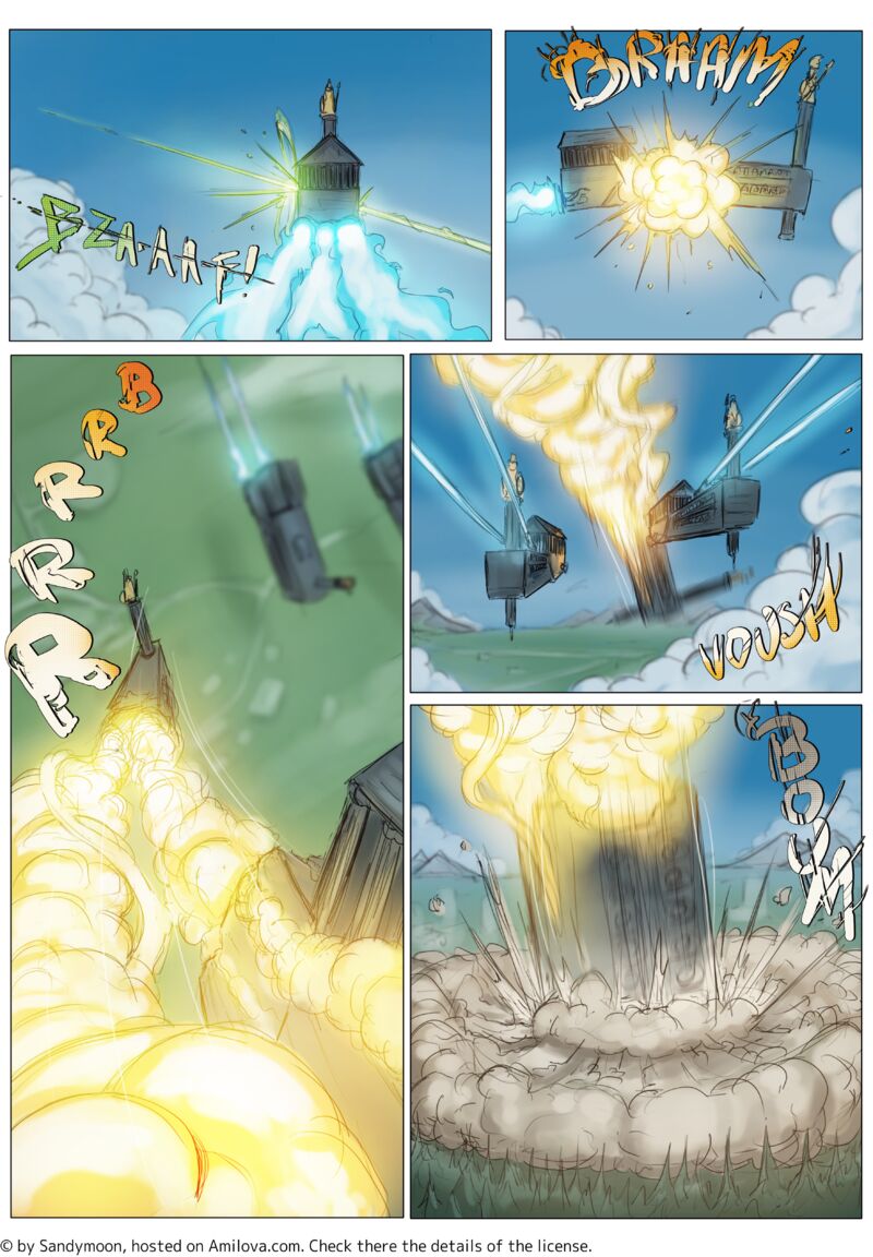 Quel gros boum. Enfin... c'est plus un "braaam". Bref. Voilà un aéronef de moins. Les autres vont ouvrir le feu en voyant que l'un de leurs appareils a été pris par l'ennemi? Bonne continuation