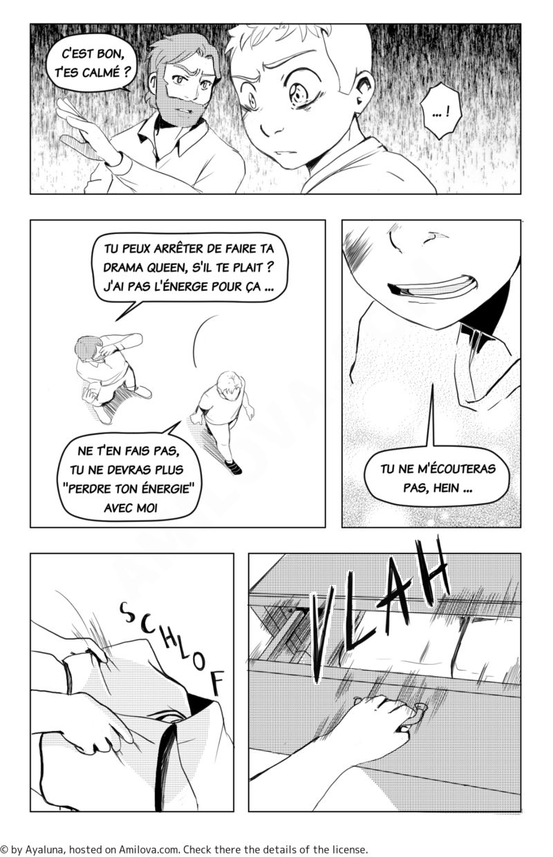 il ne le prend pas au sérieux de toute façon, il ce dira encore qu'il fait sa drama queen, que c'est qu'un lache et qu'il reviendra la queux entre les jambes